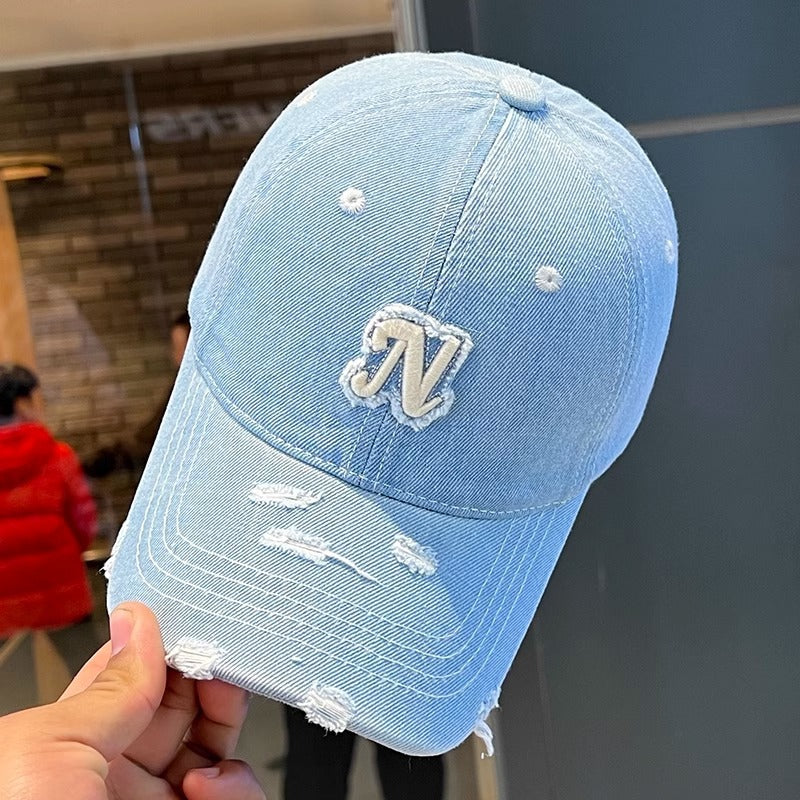 Embroidered Denim Letter Baseball Women's Ripped Peaked Cap Sun Hat