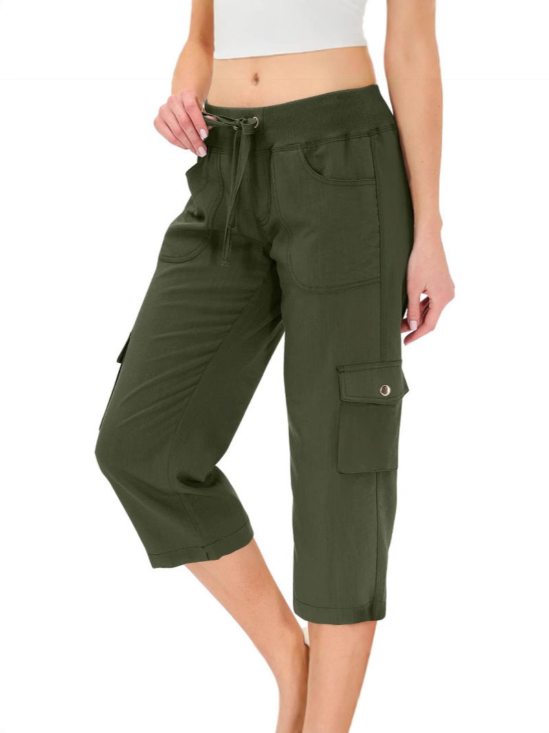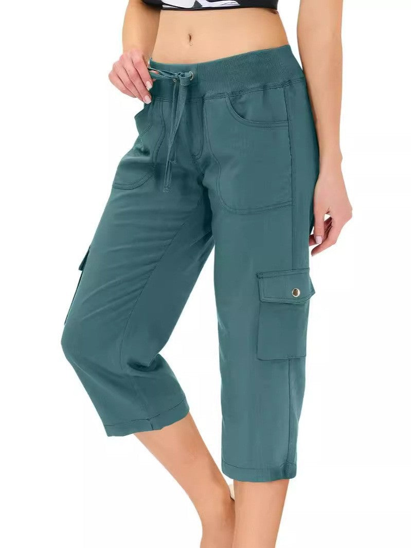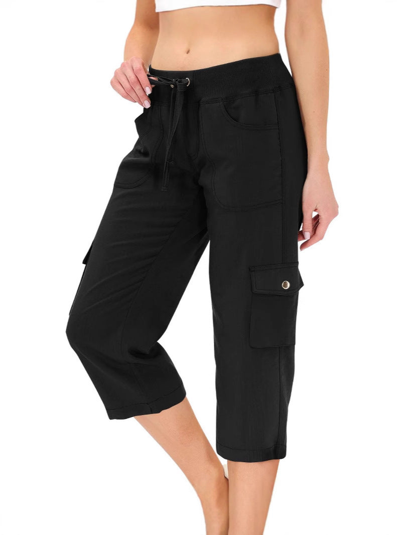Women's Solid Color Drawstring Fitness Running Cropped Pants